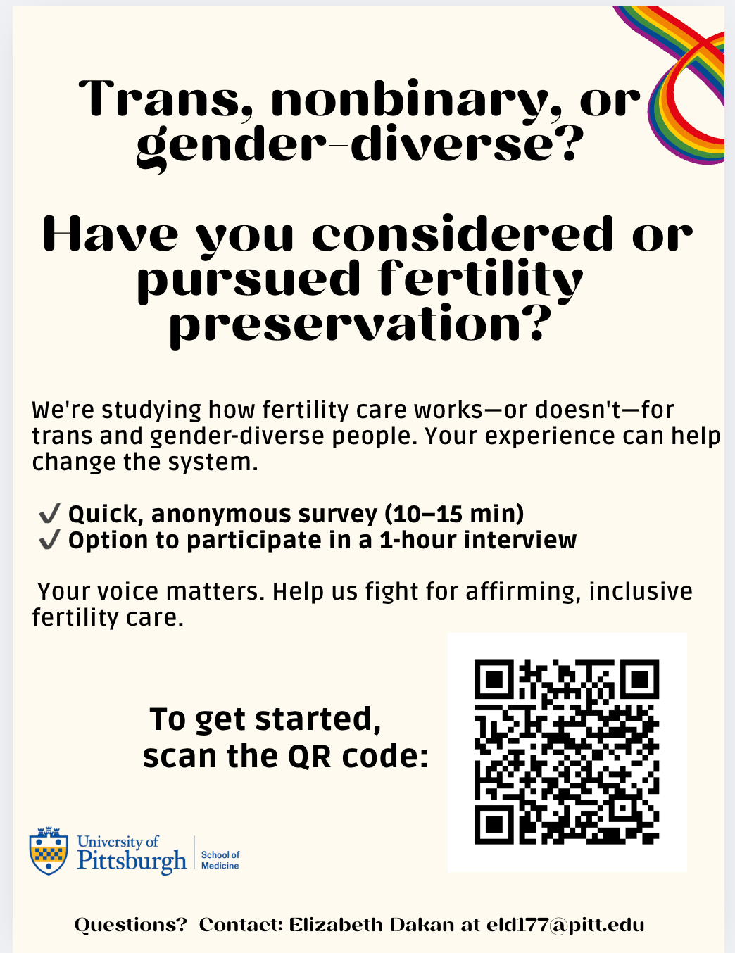 Help amplify trans, nonbinary, and gender-diverse voices in fertility care and fertility preservation.